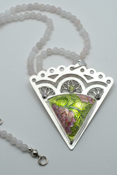 Nu het frame helemaal klaar is kunnen de stenen en het emaille worden gezet. Bij het zetten wordt een randje zilver over de steen/emaille-werkstuk 'gevouwen'. Hier komt wat kracht bij kijken.Dus...even geen muziek en opperste concentratie!; even niet opletten kan betekenen dat je gereedschap ... Read More about Zetten van het emaille