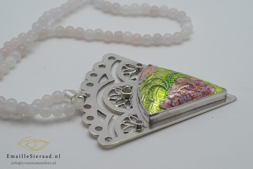 Voor de stenen heb ik gekozen: Peridot (groen) en pink saffier (roze).
