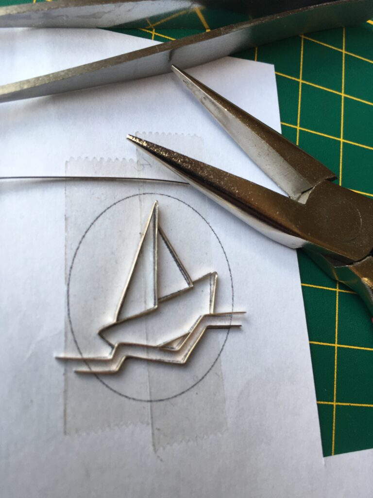 De draden worden heel nauwkeurig gebogen zodat ze precies de tekening volgen. De draden zijn van fijn zilver en kunnen met een pincet of tang worden gebogen.