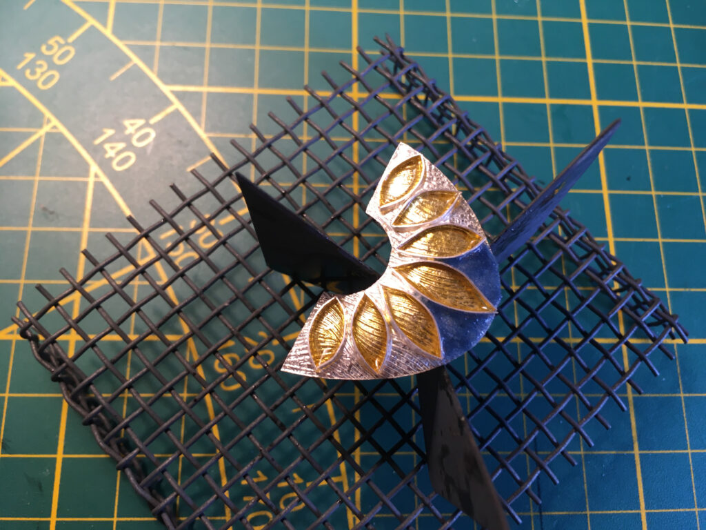 Nadat er 6 lagen waren gestookt werd het sieraad geschuurd en gepolijst.