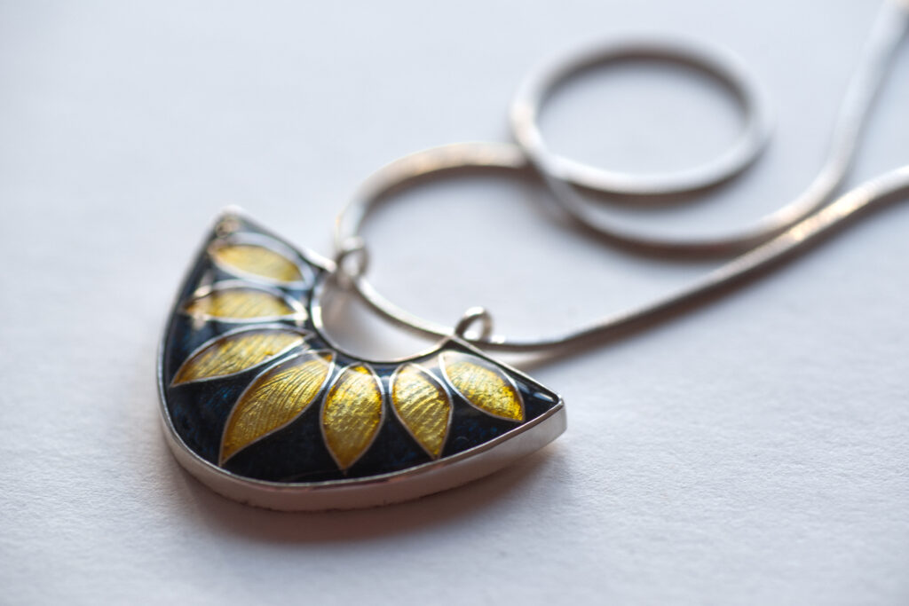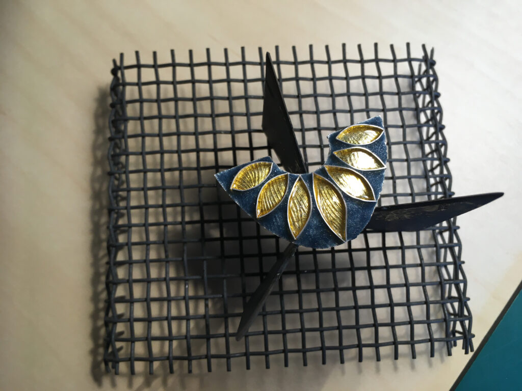 De zonnebloem heeft een ‘gouden gloed’; dat werd het uitgangspunt voor het sieraad. Er werd gekozen voor goudgeel en (als contrast) nachtblauw. Het ontwerp moest een moderne uitstraling hebben.