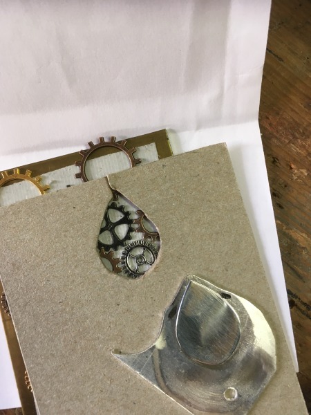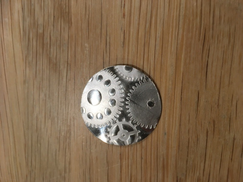 De vertaalslag werd gemaakt naar klokken en tandwielen. Een oude klok werd uit elkaar gehaald en de tandwielen gebruikt om impressies te maken in fijn zilver.