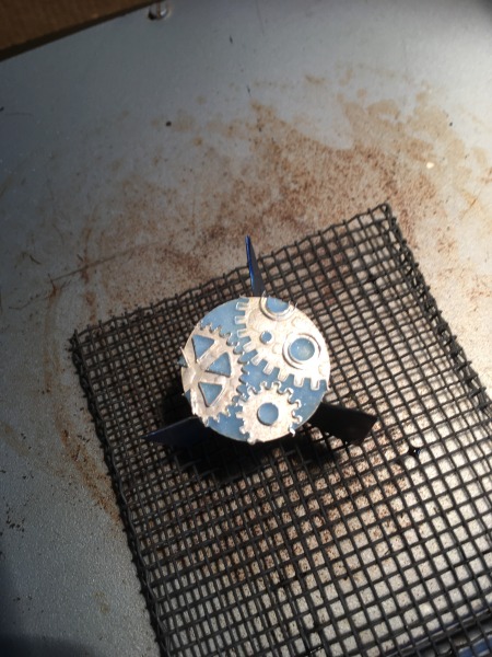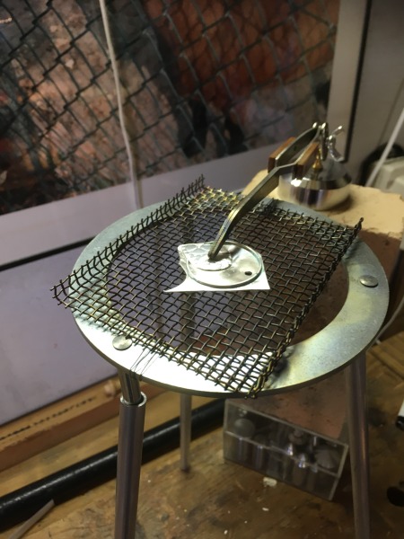 - Een vormpje werd op een koperen onderplaat gesoldeerd.