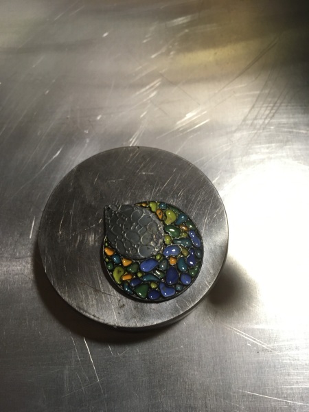 - Een vormpje werd op een zilveren onderplaat gefused (gesmolten)